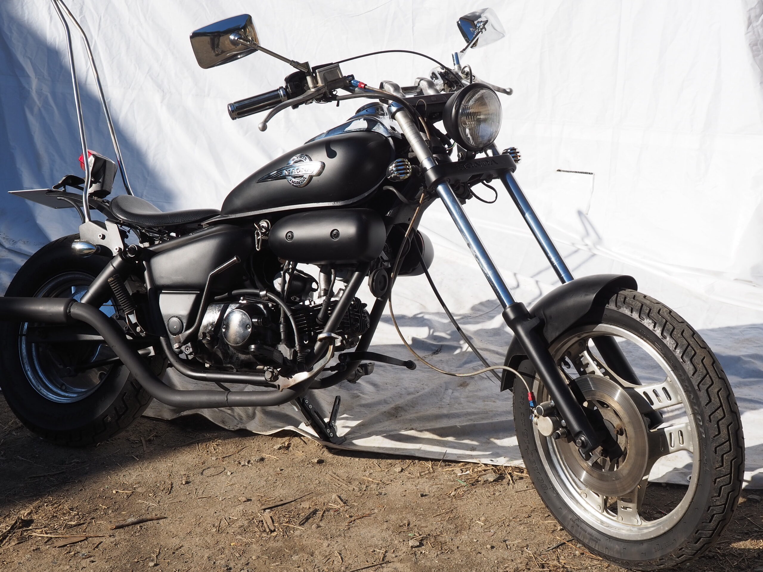 人気のマットブラック塗装を施した車体に、110㏄エンジン・シーシーバーと外装カスタムもされており人気の仕様に仕上がっています。