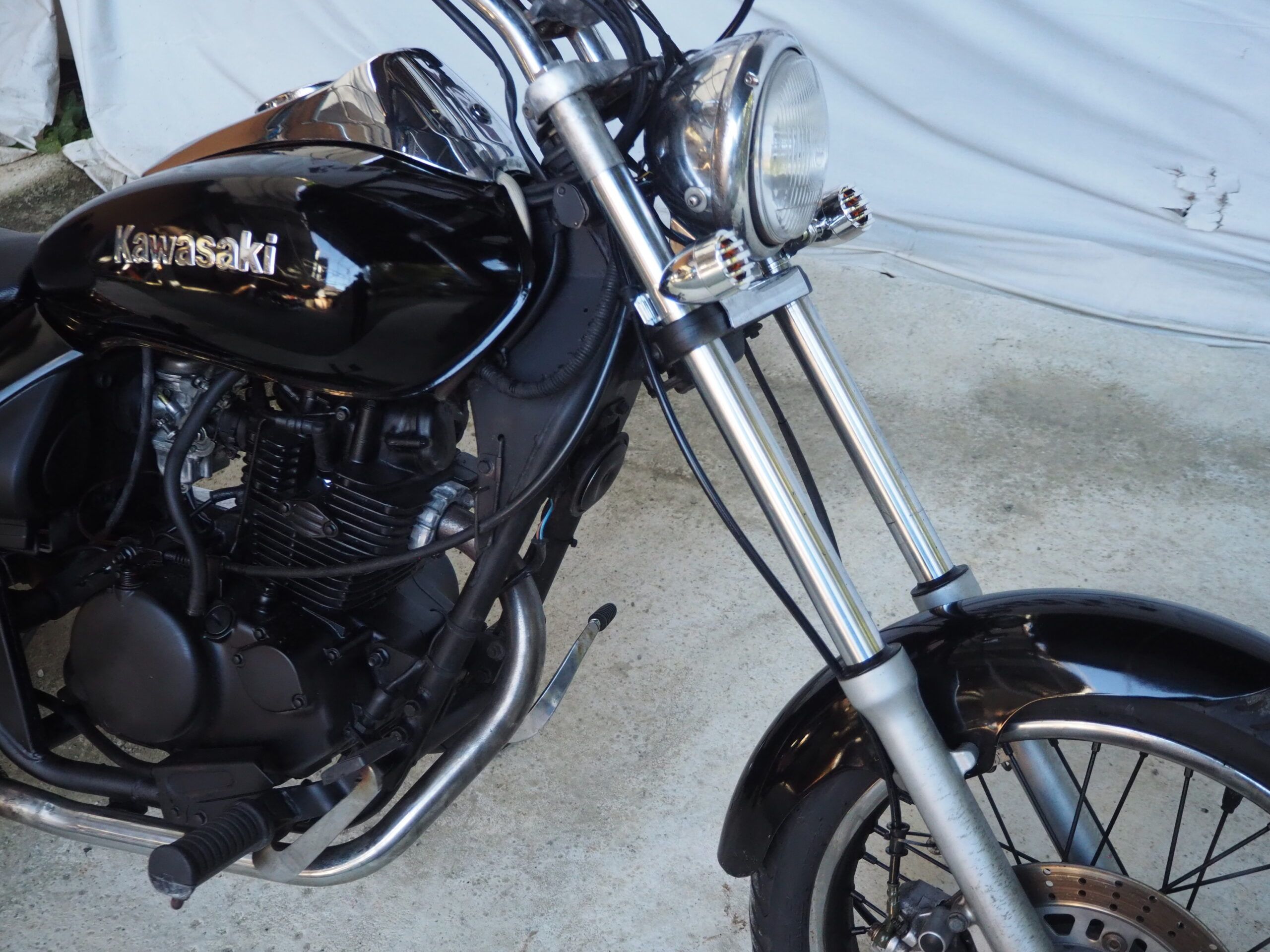スプロケット、マフラー、社外ブレーキ、ロングフォークとカスタム複数されています。