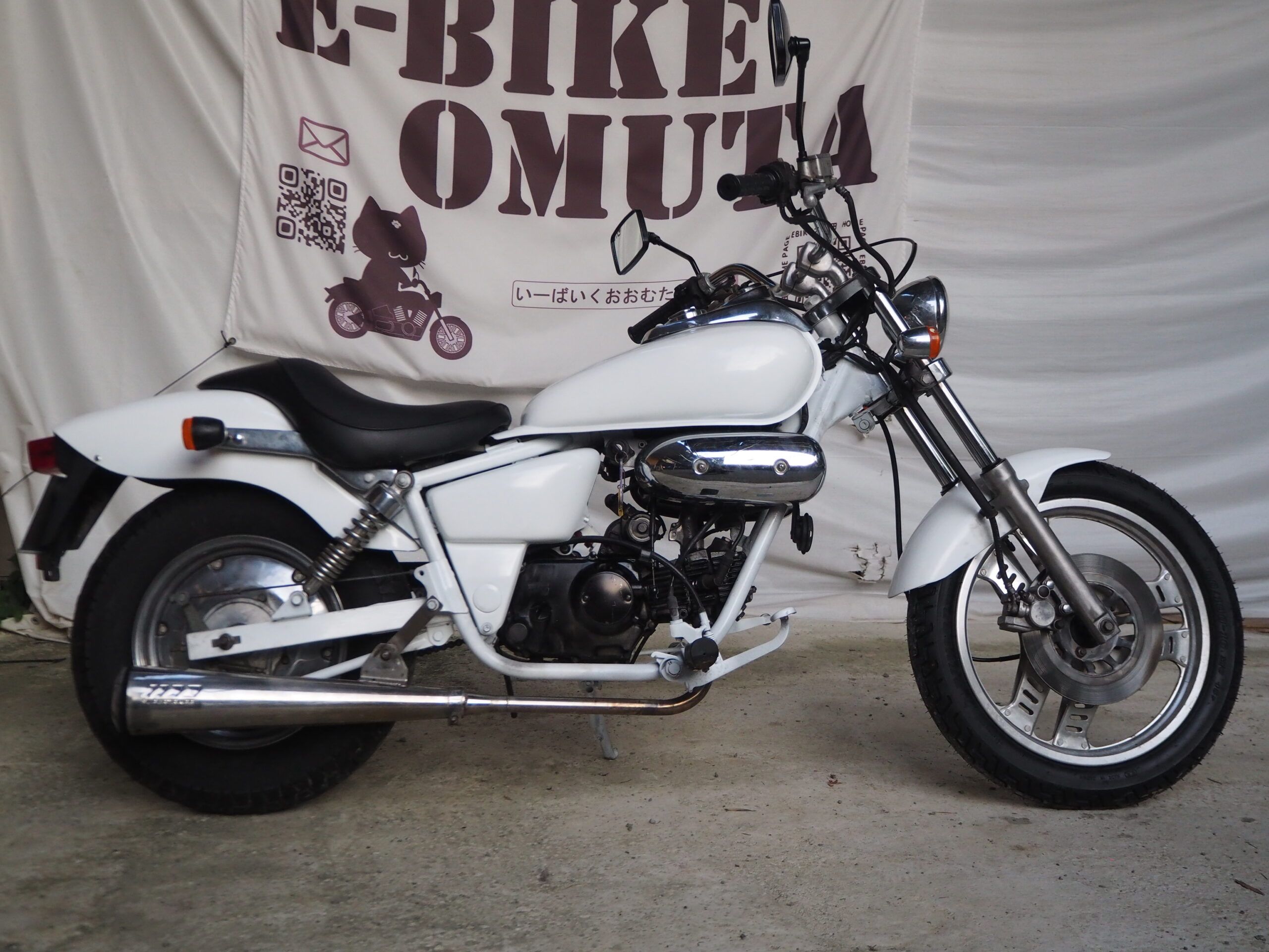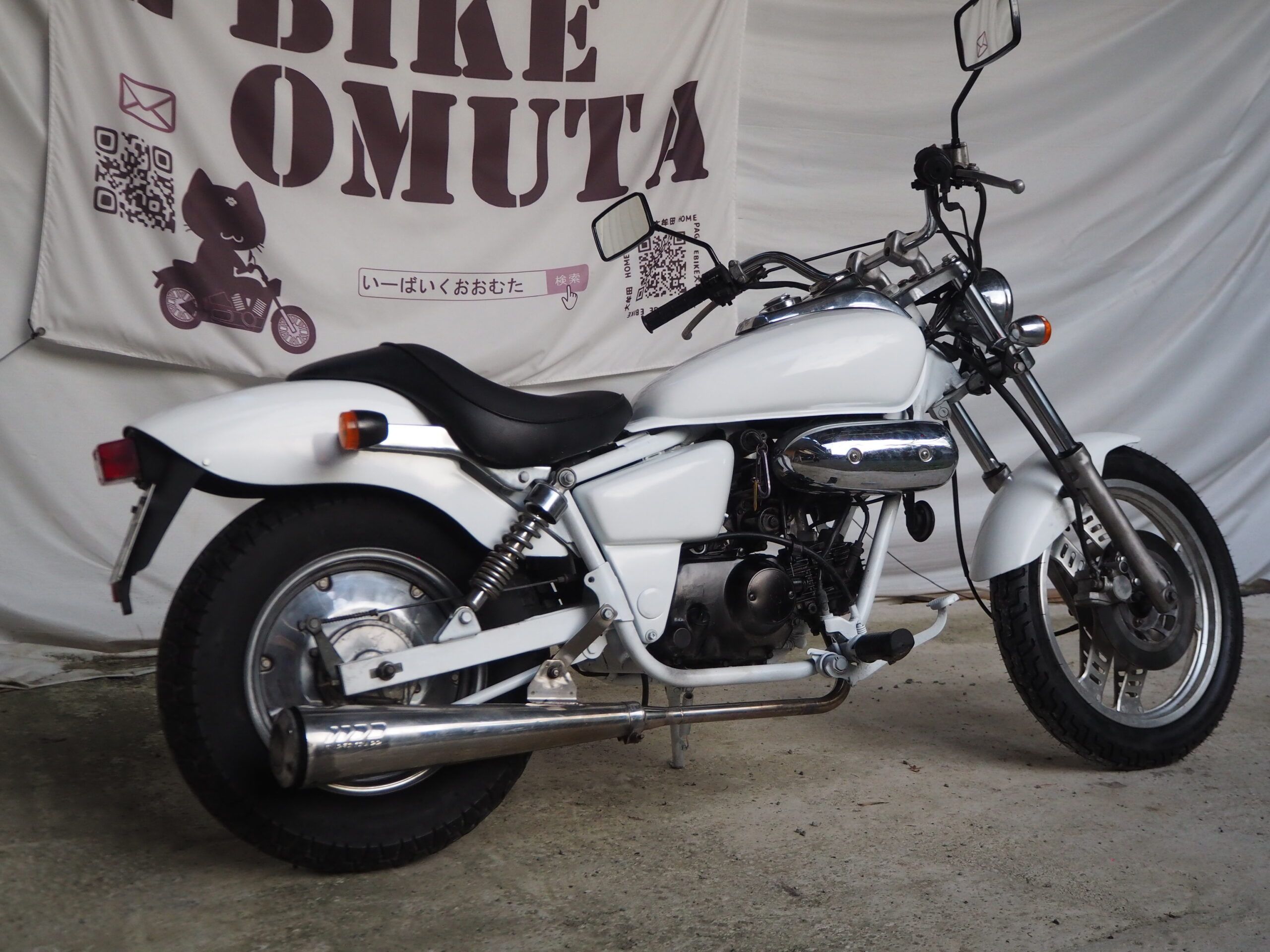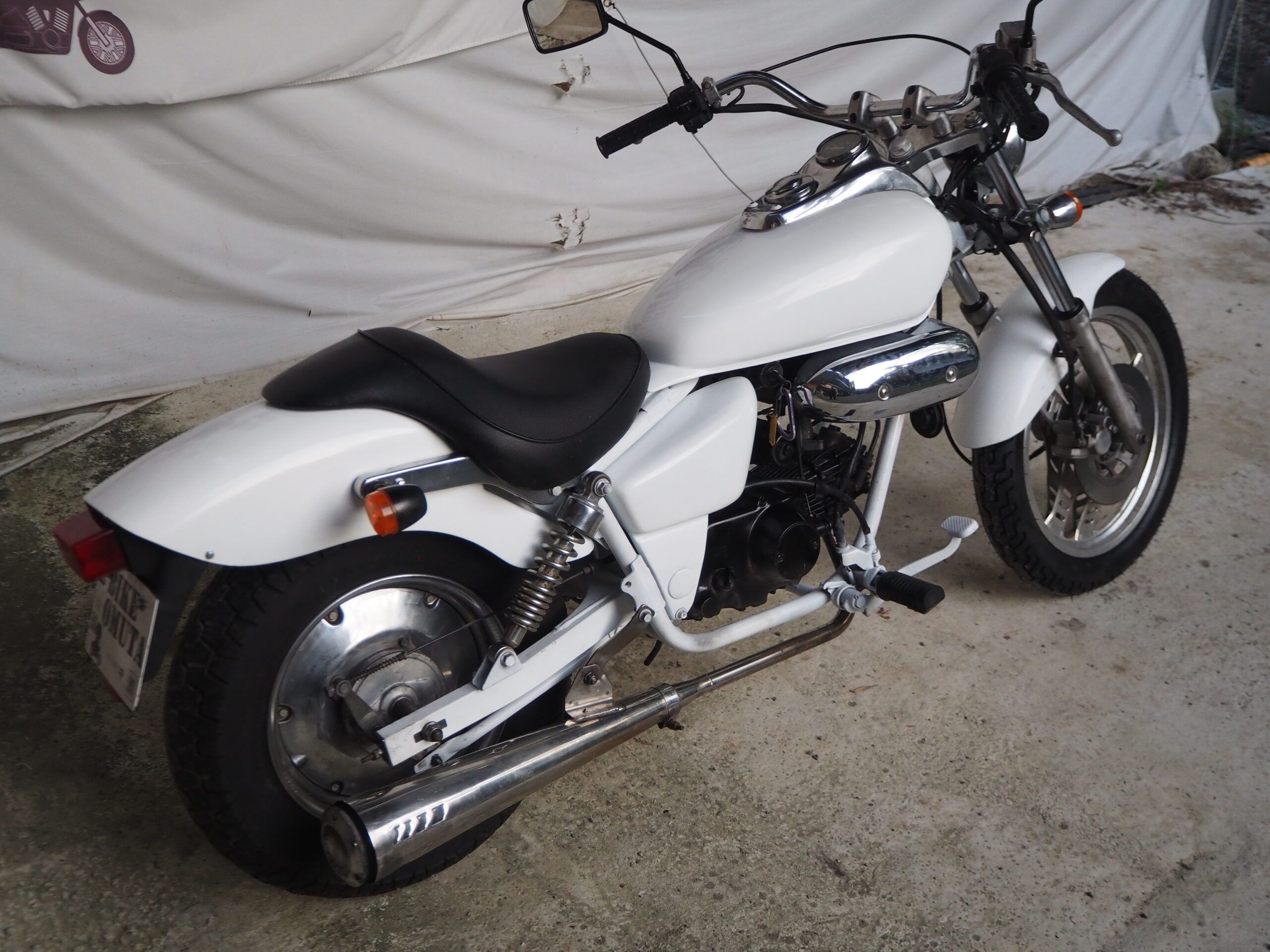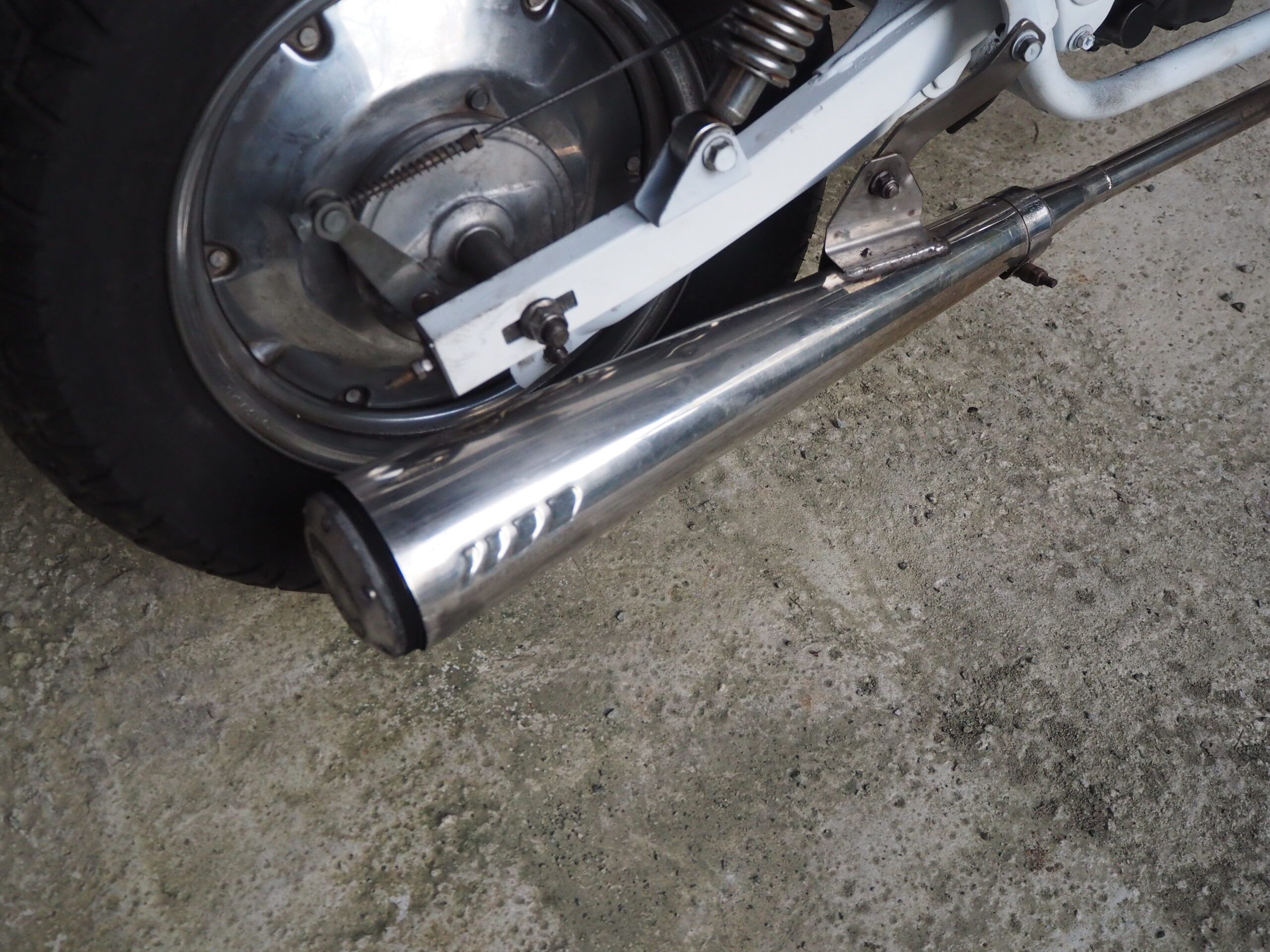 外観はハンドルは社外ハンドル、社外マフラーで仕上げています。