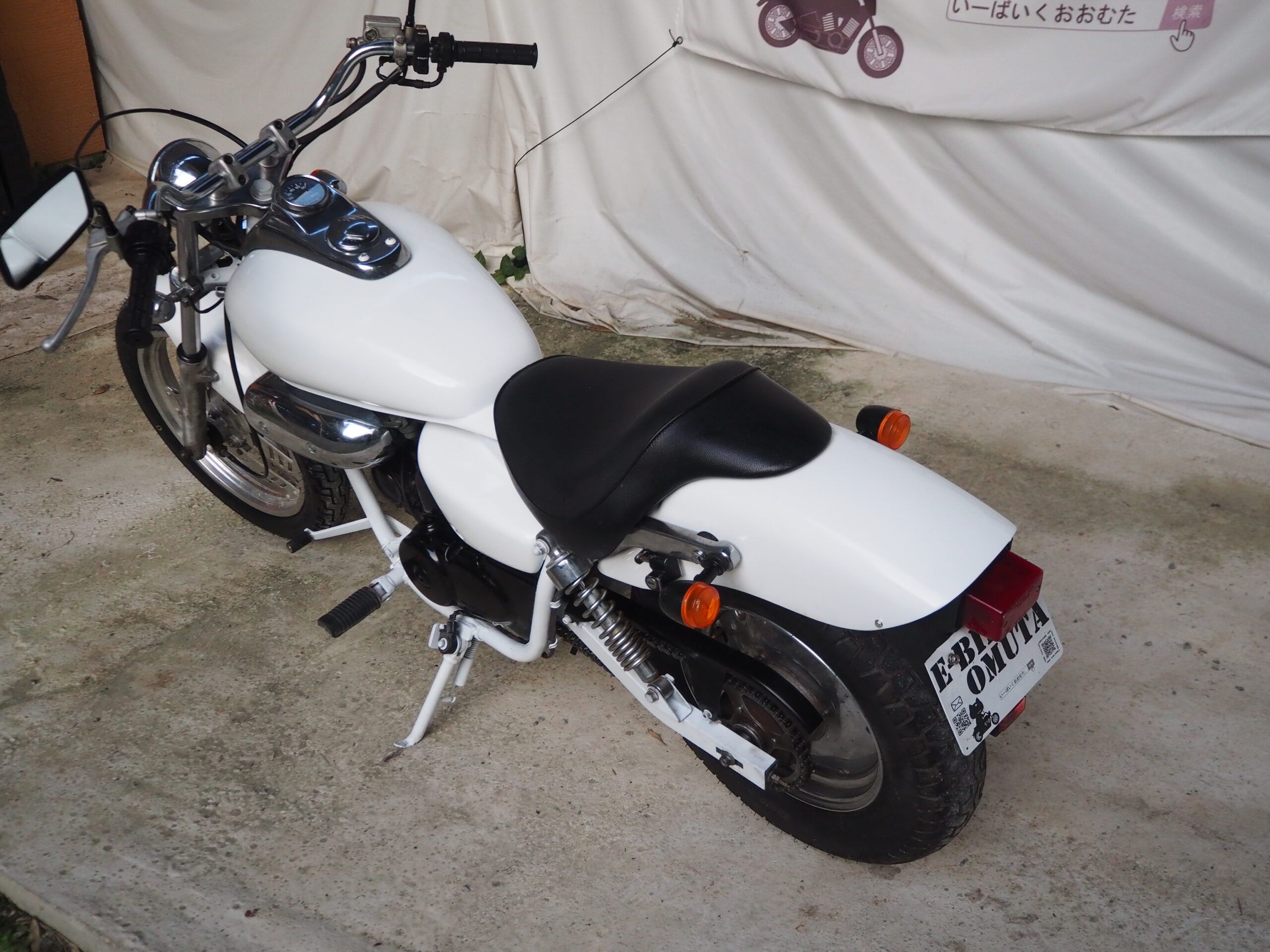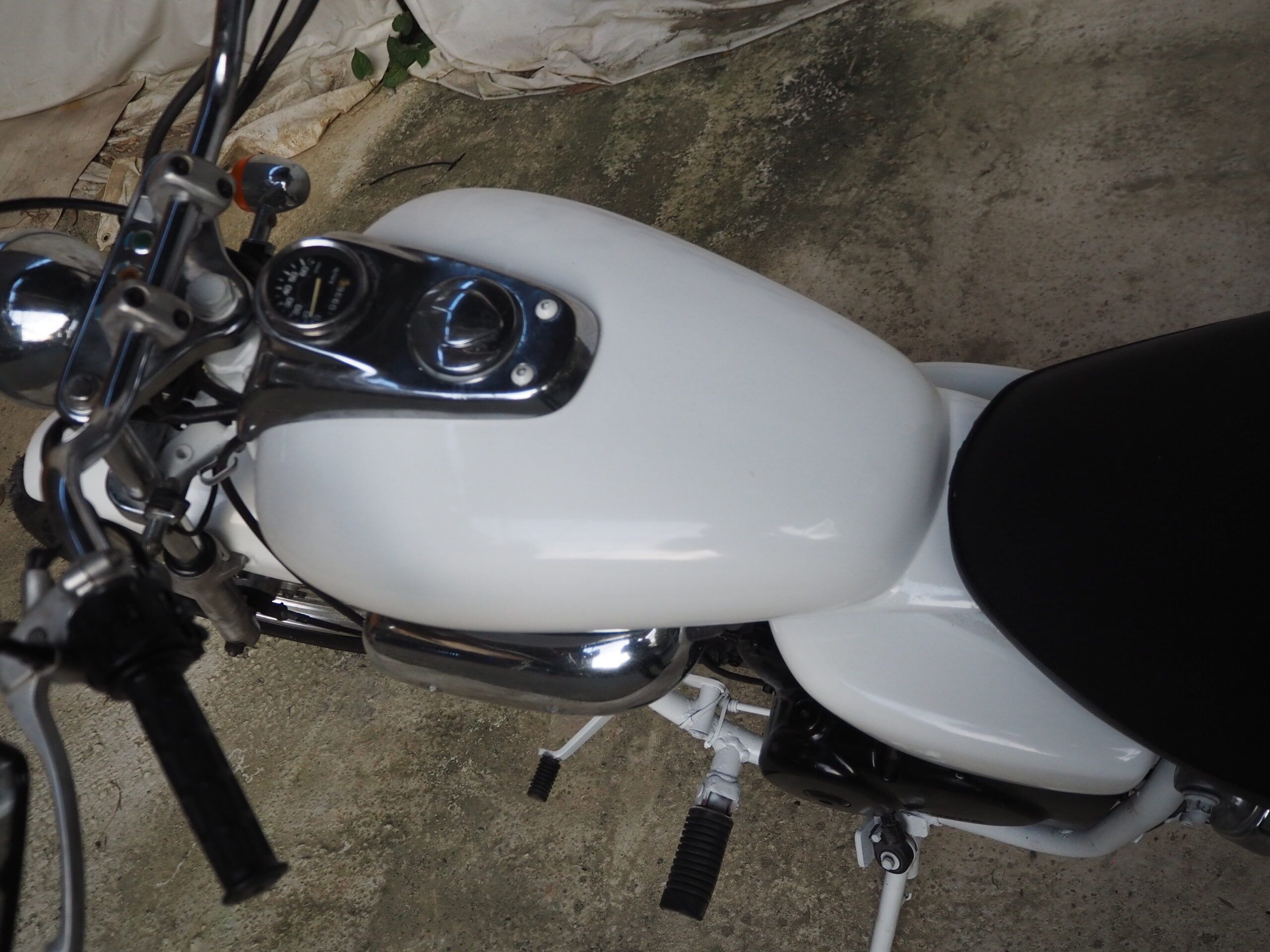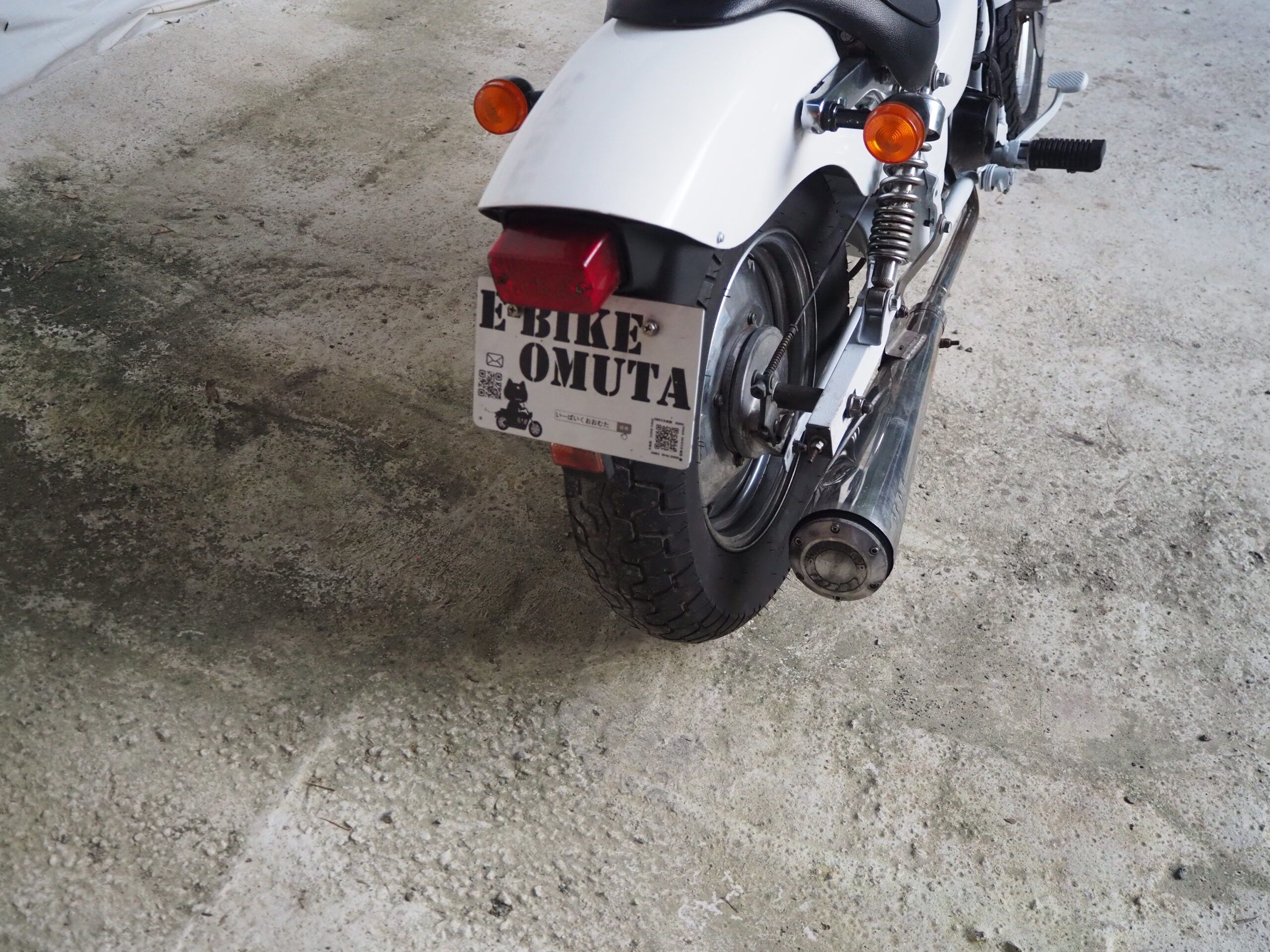外観はハンドルは社外ハンドル、社外マフラーで仕上げています。