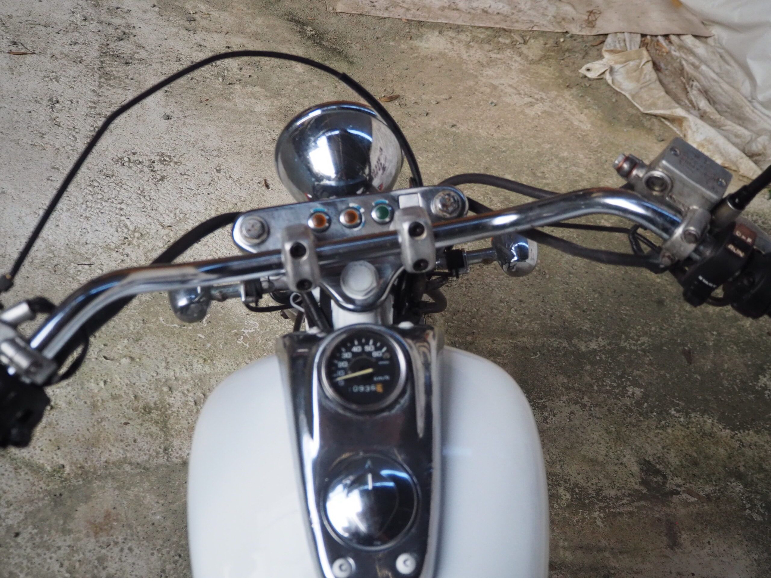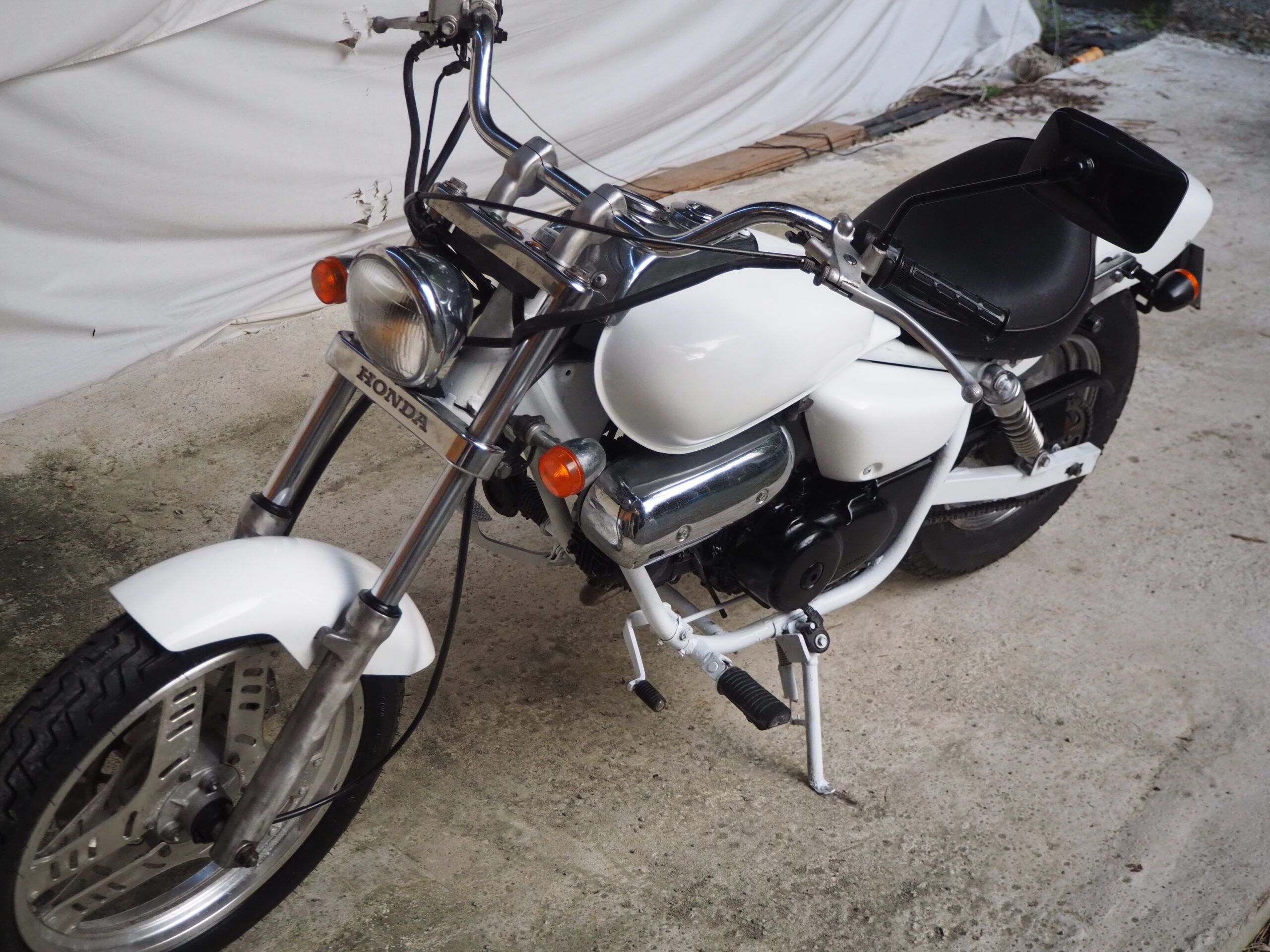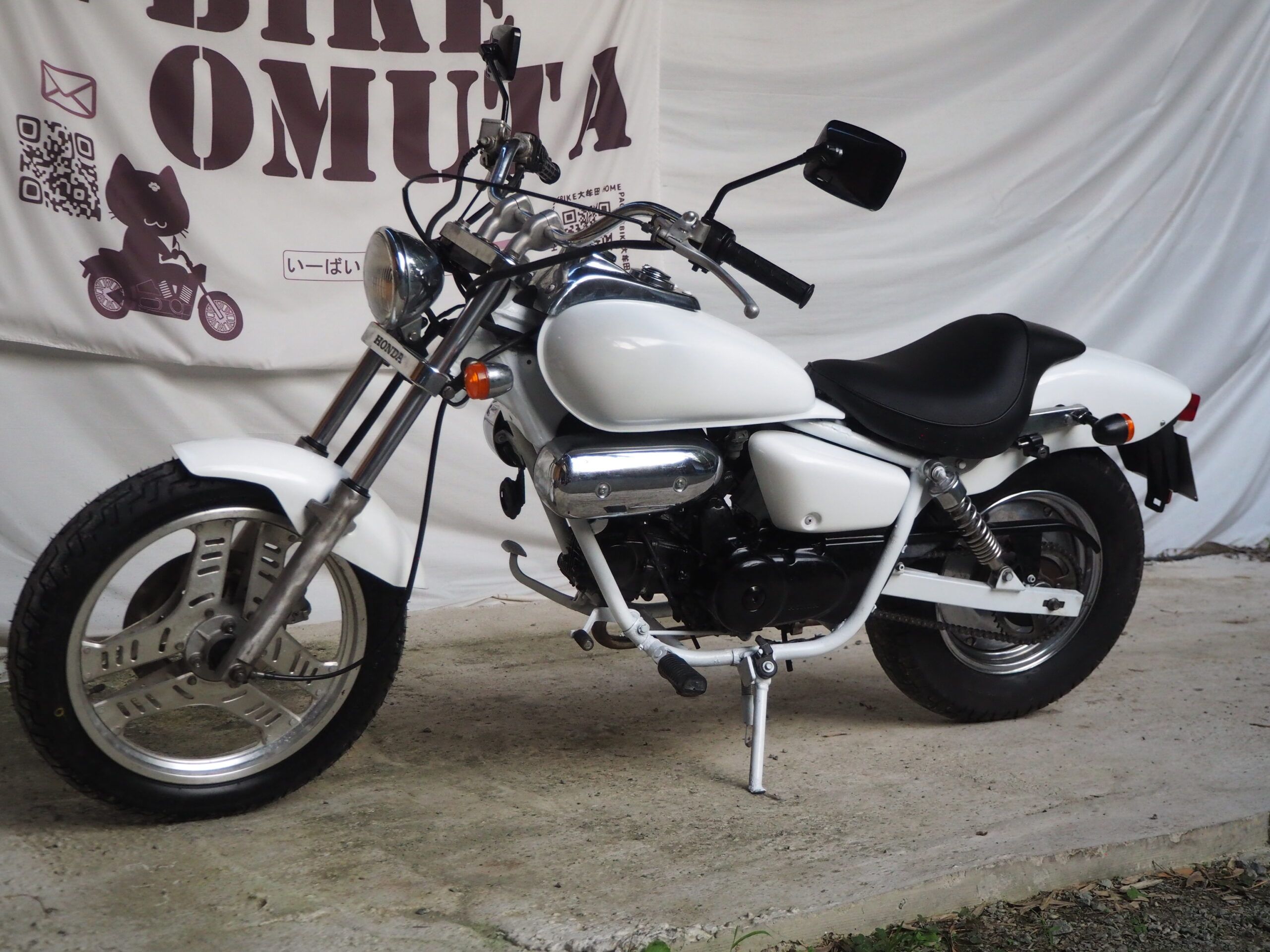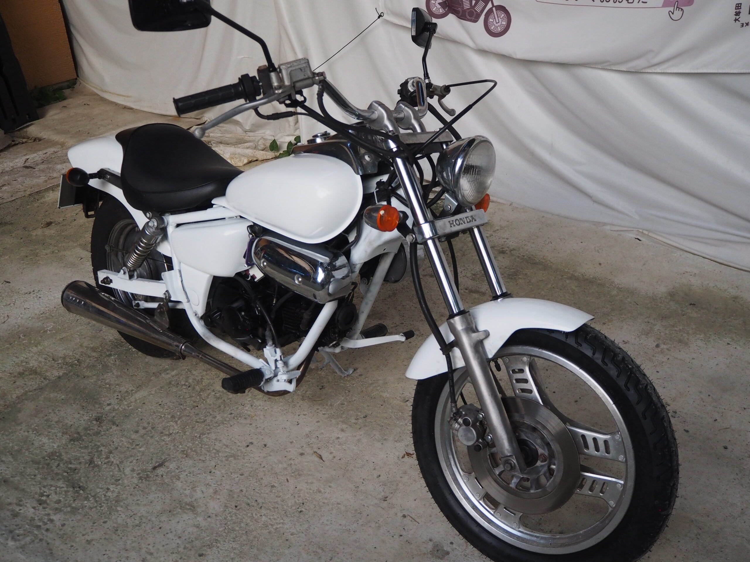 外観はハンドルは社外ハンドル、社外マフラーで仕上げています。