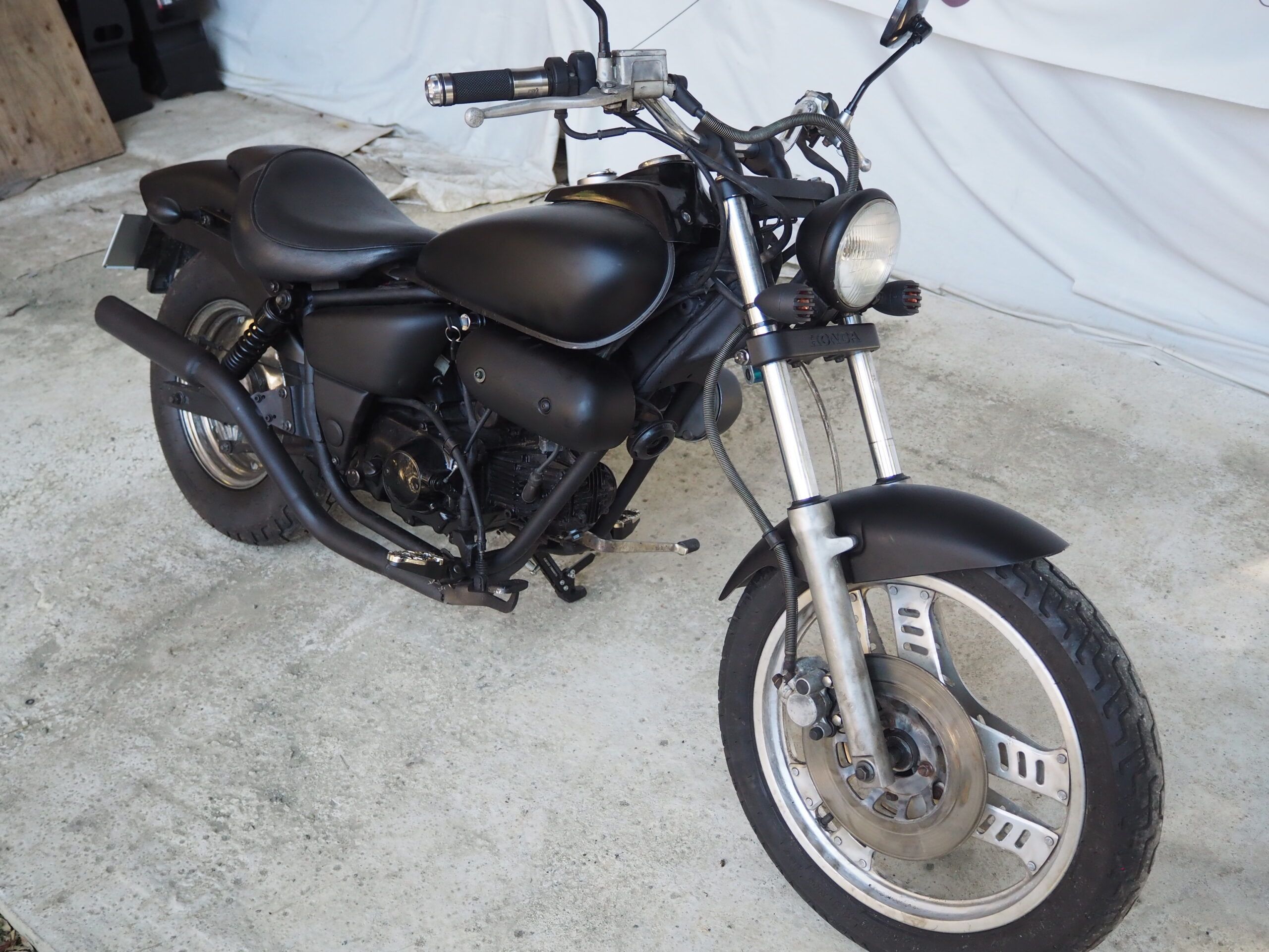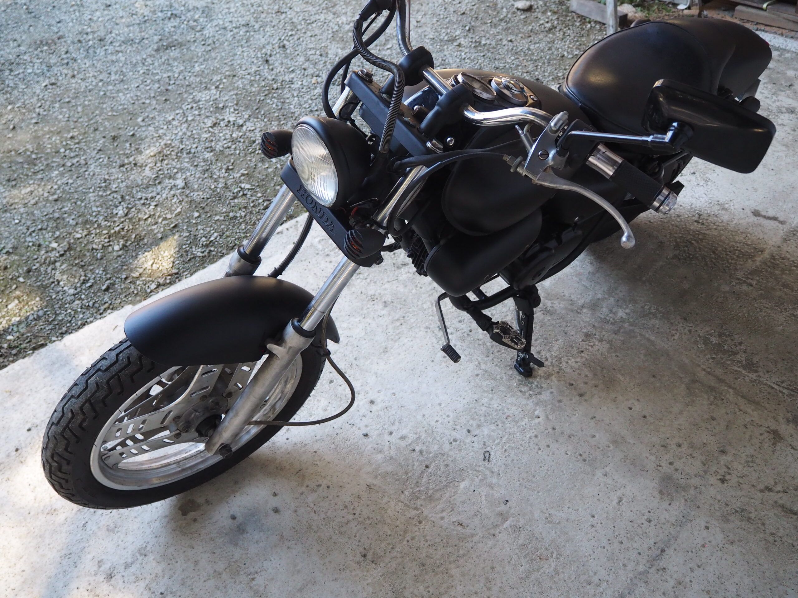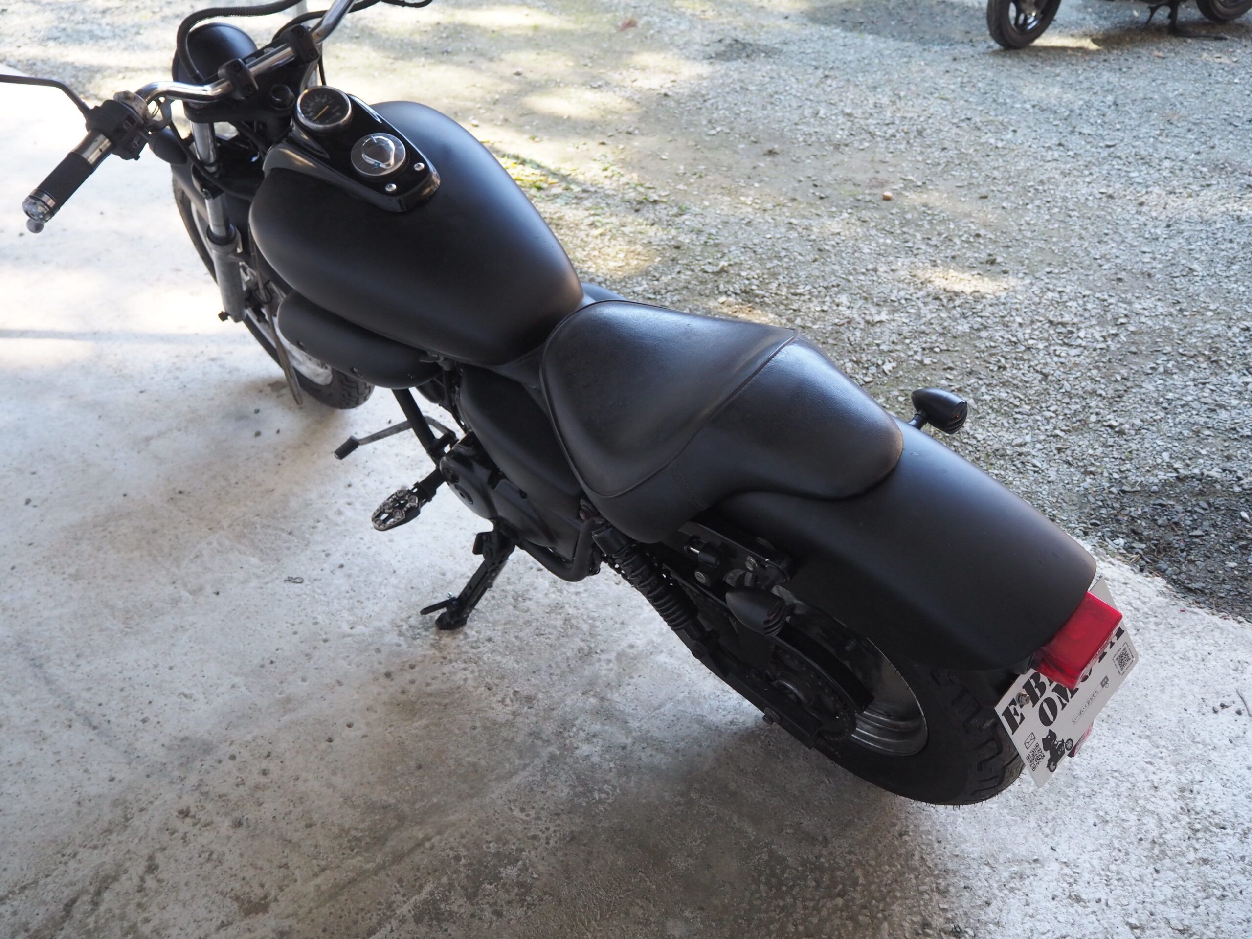 外観はハンドルは社外ハンドル、社外マフラーで仕上げています。